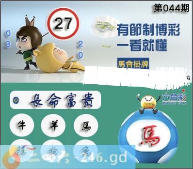 2025年044期正版彩图挂:27 爆:马 挂牌成语:长命富贵 挂牌出肖:牛羊马龙狗兔